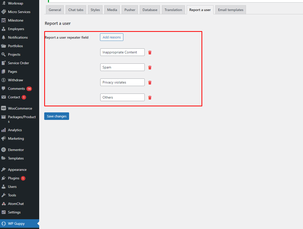 To access the general setting, go to WP guppy > General. Here you will see many useful settings for your messenger chat and chat role assigning etc.