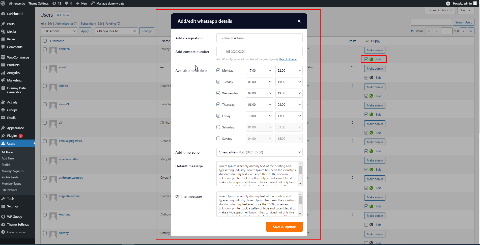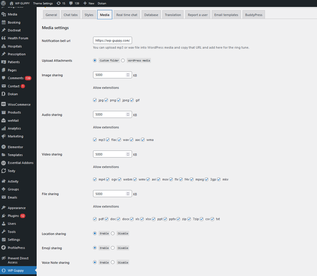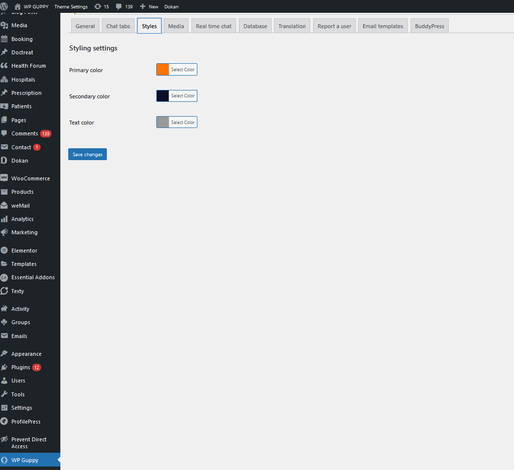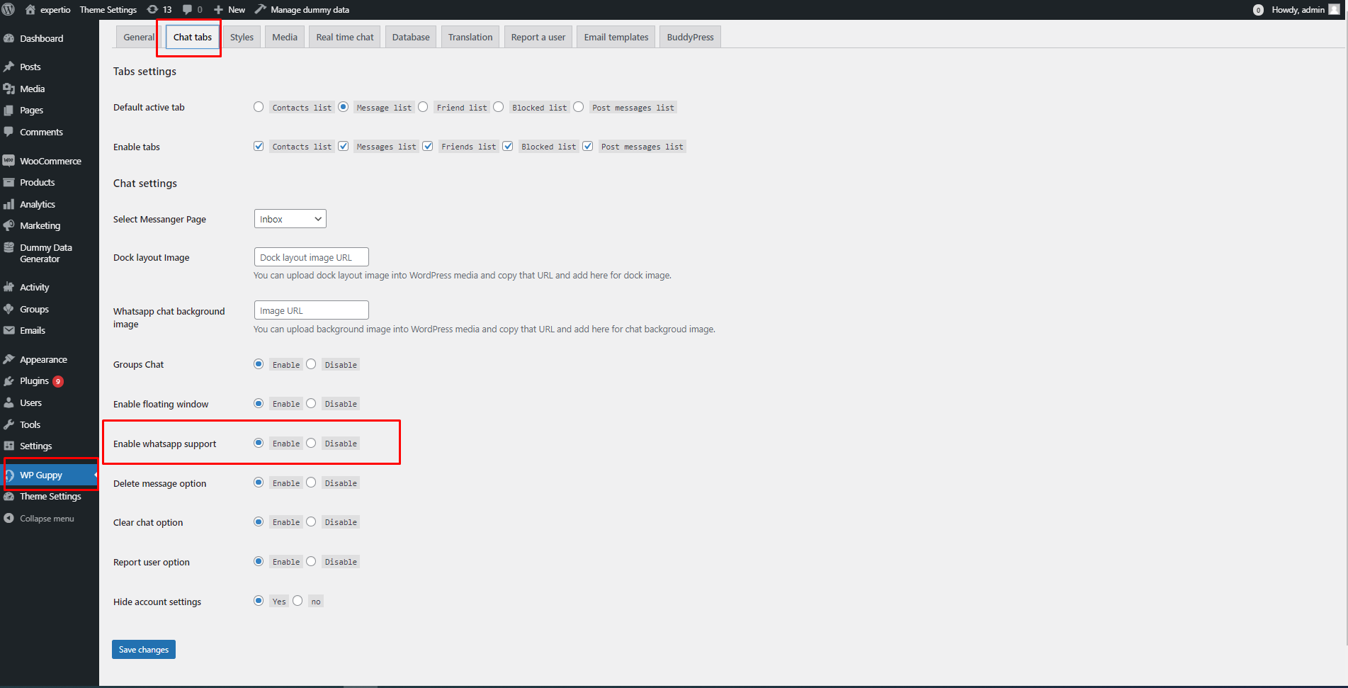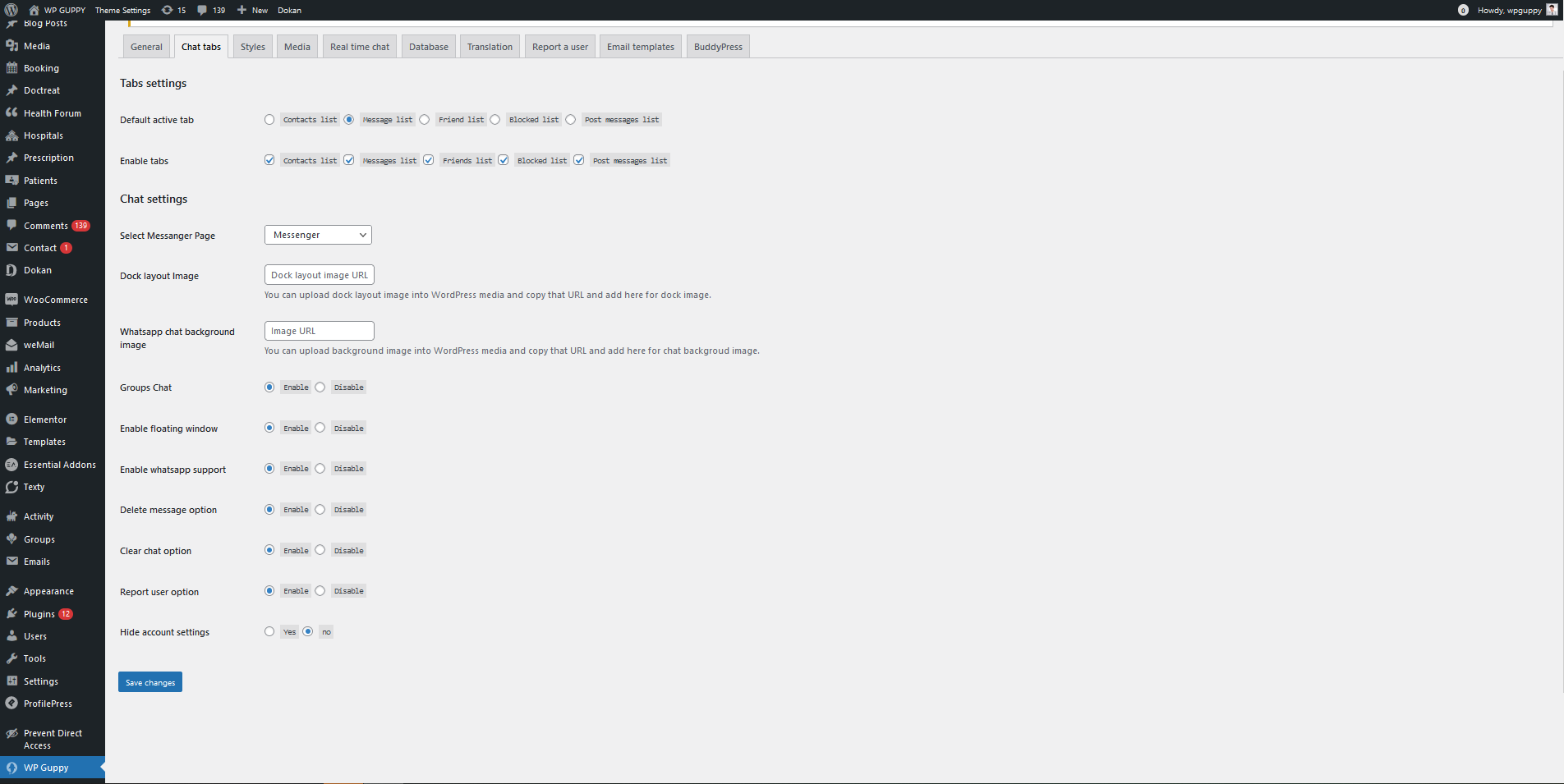 To access the general setting, go to WP guppy > General. Here you will see many useful settings for your messenger chat and chat role assigning etc.